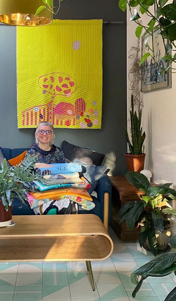 As the owner of the Studio, Nicola Perren plays with scale, colour, form and mark-making to make hand painted onto sustainably sourced plant-based fabric, ready for the user to translate into quilts, fashion, accessories, soft furnishings and so on. Nicola pays particular attention to hand painting fabrics suitable for zero-waste pattern cutting and utilising small fabric pieces patchwork and applique as mending or decoration.
