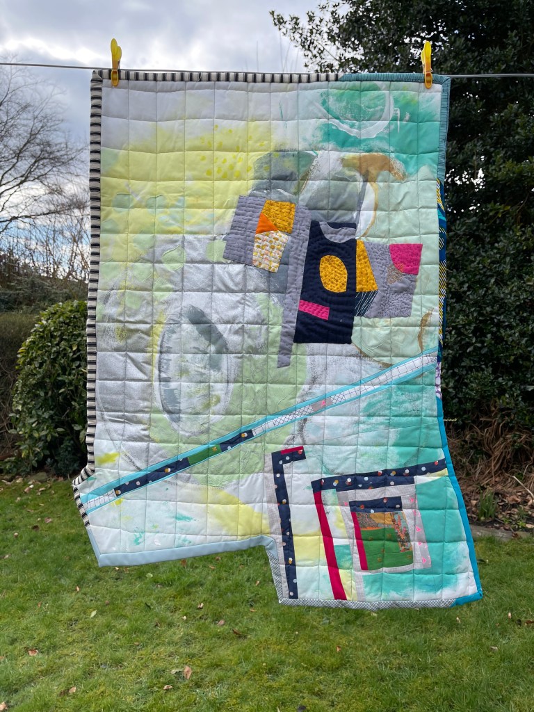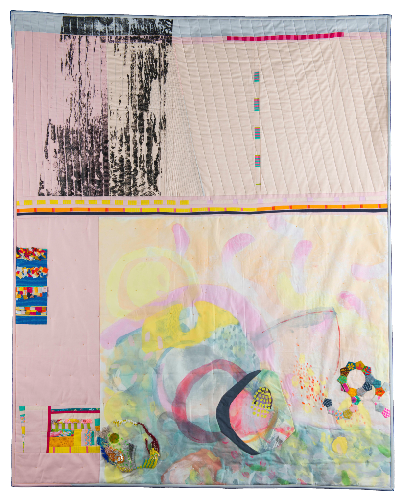 Hand painted cotton, quilting, applique.